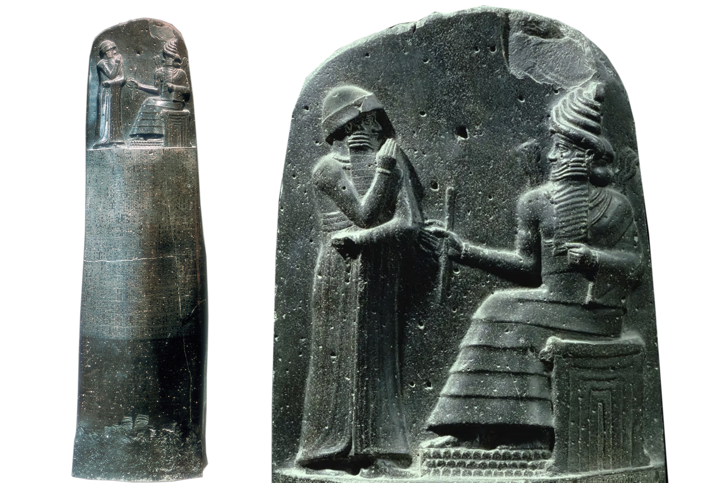 La scultura mesopotamica è monumentale, non sempre per le dimensioni, ma sicuramente perché rispettano il significato antico della parola monumentum, ossia“ricordo”. In quei territori c’era molto da ricordare e forti del potere incisivo della scrittura si ricordava ai cittadini soprattutto la legge. Una delle più importanti opere in questo senso è la Stele di Hammurabi. È stata realizzata intorno al 1760 a.C., cavata da un blocco di basalto alto oltre due metri. Ha la caratteristica di essere decorata con le iscrizioni delle leggi mesopotamiche, il codice di Hammurabi. In più sulla cima c’è il bassorilievo che rappresenta il re babilonese in piedi davanti al dio del sole e della giustizia, Shamash, che è seduto sul trono.