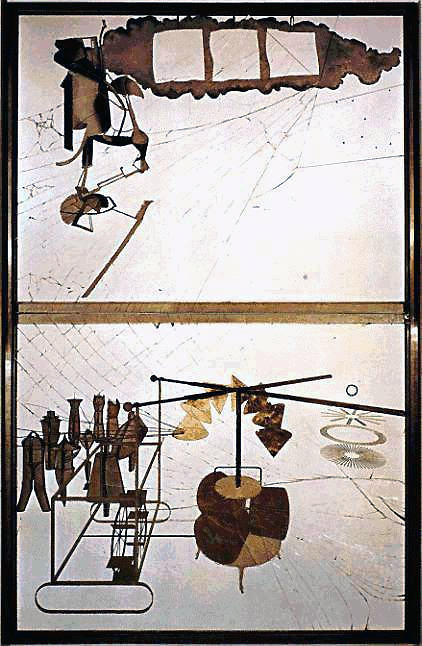 Nel Grande Vetro, Duchamp ha unito arte, scienza, sesso e amore in un modo assurdamente umoristico. Lascia che le macchine provino ad innamorarsi; immagina la sposa/insetto/antenna irraggiungibile; sperimenta materiali disparati; accetta la casualità della polvere, dei vetri frantumati e dei segni lasciati casualmente da un cannone giocattolo; il tutto avvolto nelle forze invisibili dal misterioso funzionamento scientifico. Il grande vetro diventa così oggetto incomprensibile ma al tempo stesso meccanismo allegorico dell’universo stesso.